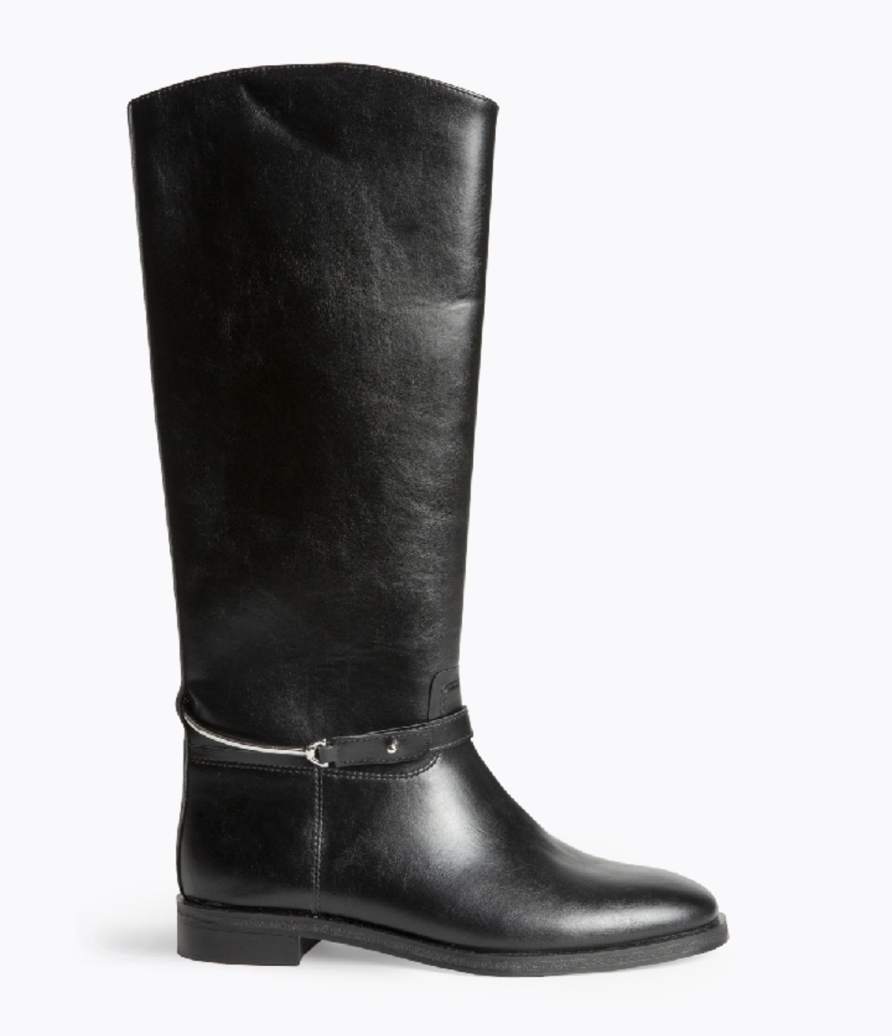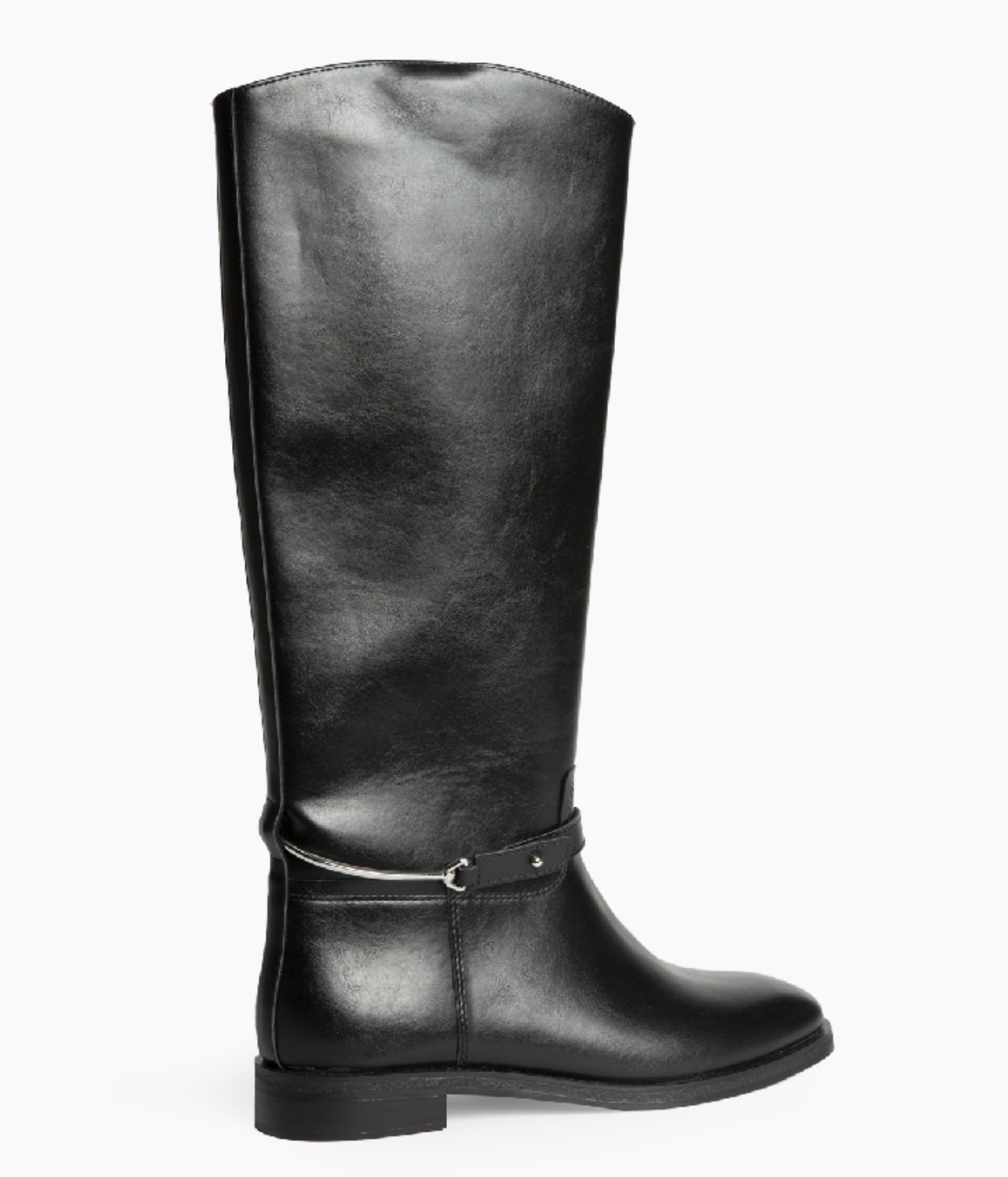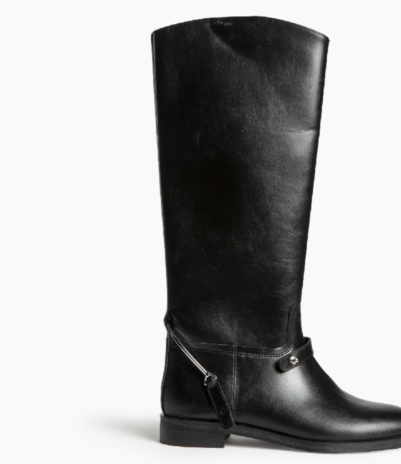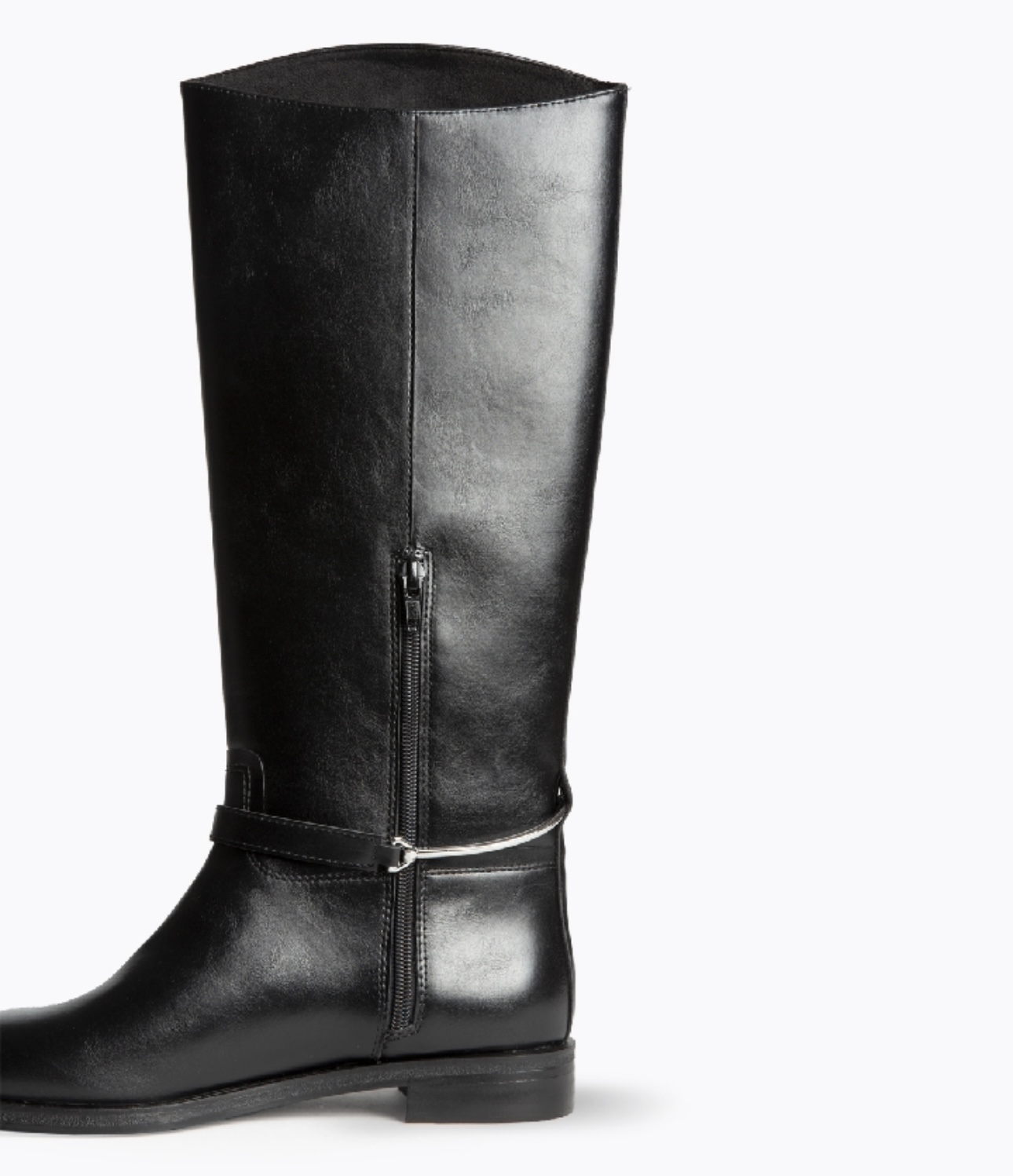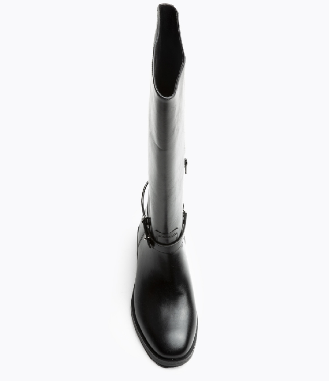 Bota biker en color negro de Corina, cierre con cremallera lateral, punta redondeade. Detalle espuela desmontable.