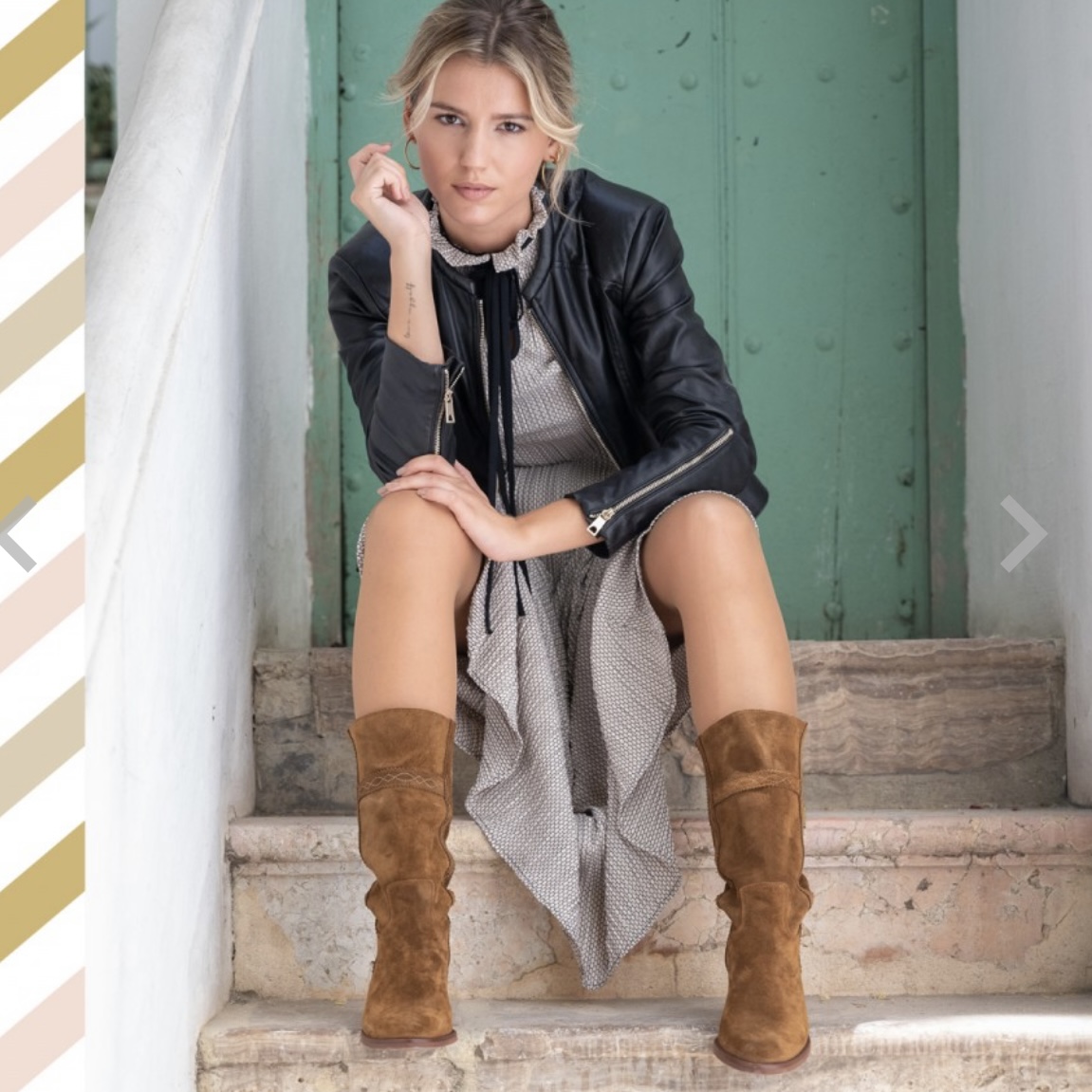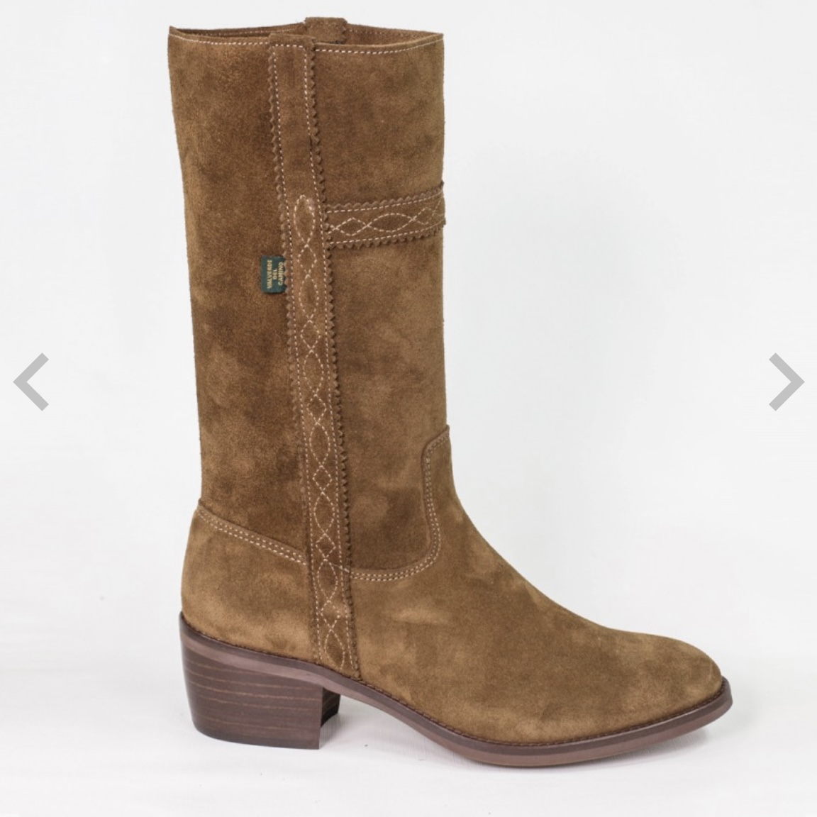 Bota de Dakota Boots estilo campero en piel oil, color capucciono, con adorno en tiras bordadas. 100% fabricadas de manera artesanal en Valverde. Garantía Dakota Boots.