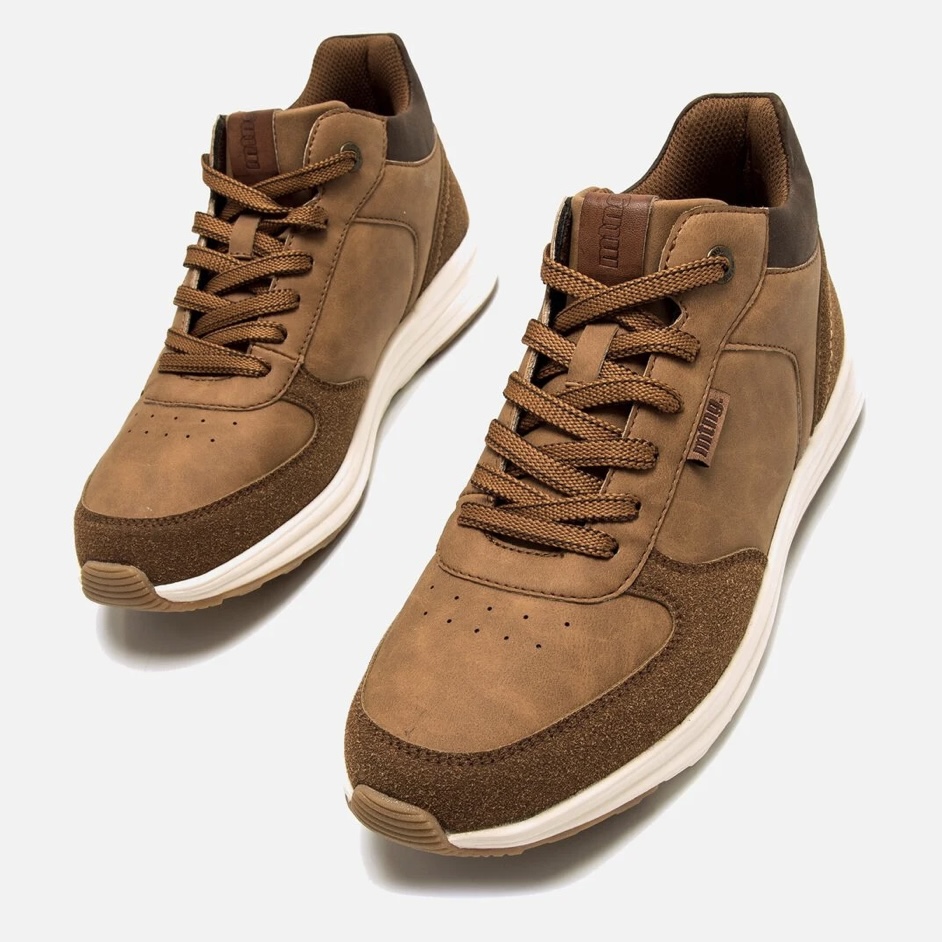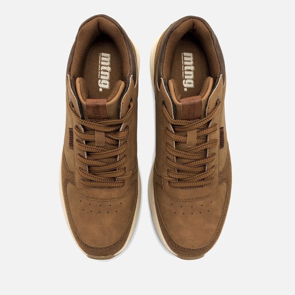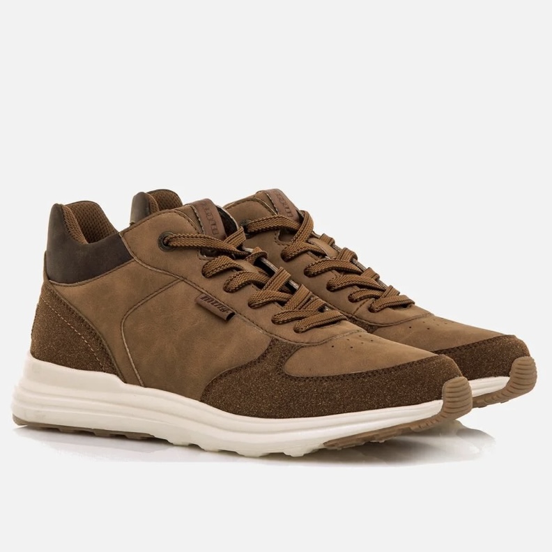 Bota de Mustang en color camel estilo deportivo, cierre de cordones que ofrece un ajuste cómodo. Suela gruesa de color claro que proporciona una buena amortiguación y contraste visual.