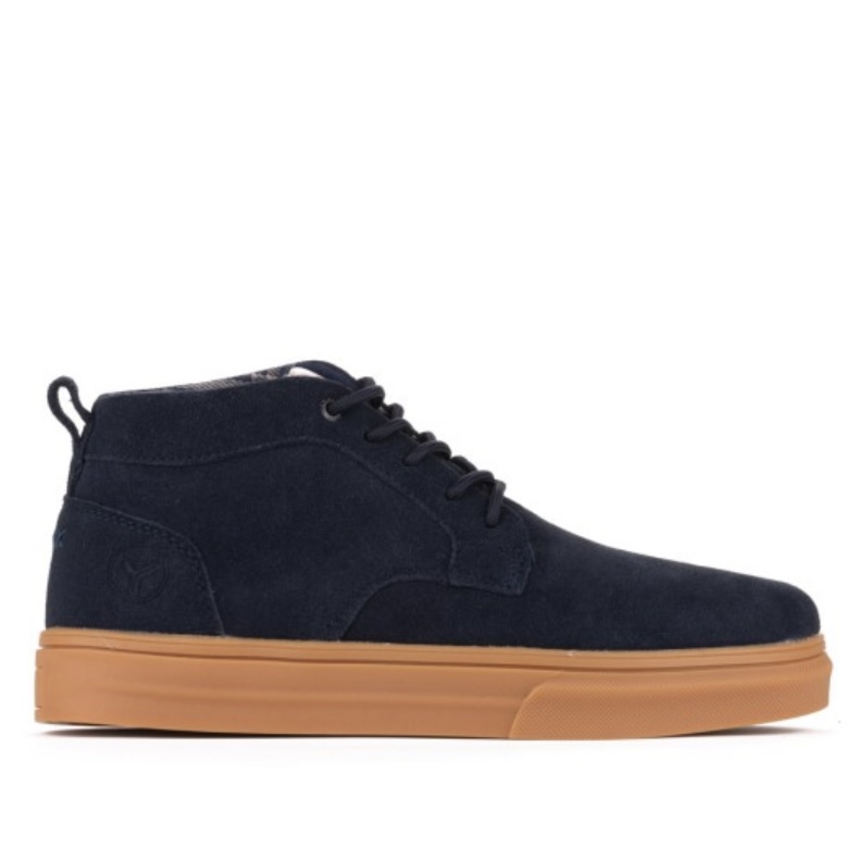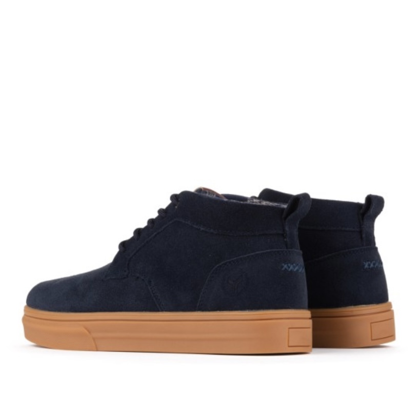 Bota de Yumas en piel en piel de serraje color azul marino, cierre de cordones, suela de goma muy flexible y anti deslizante, plantillas látex confort.