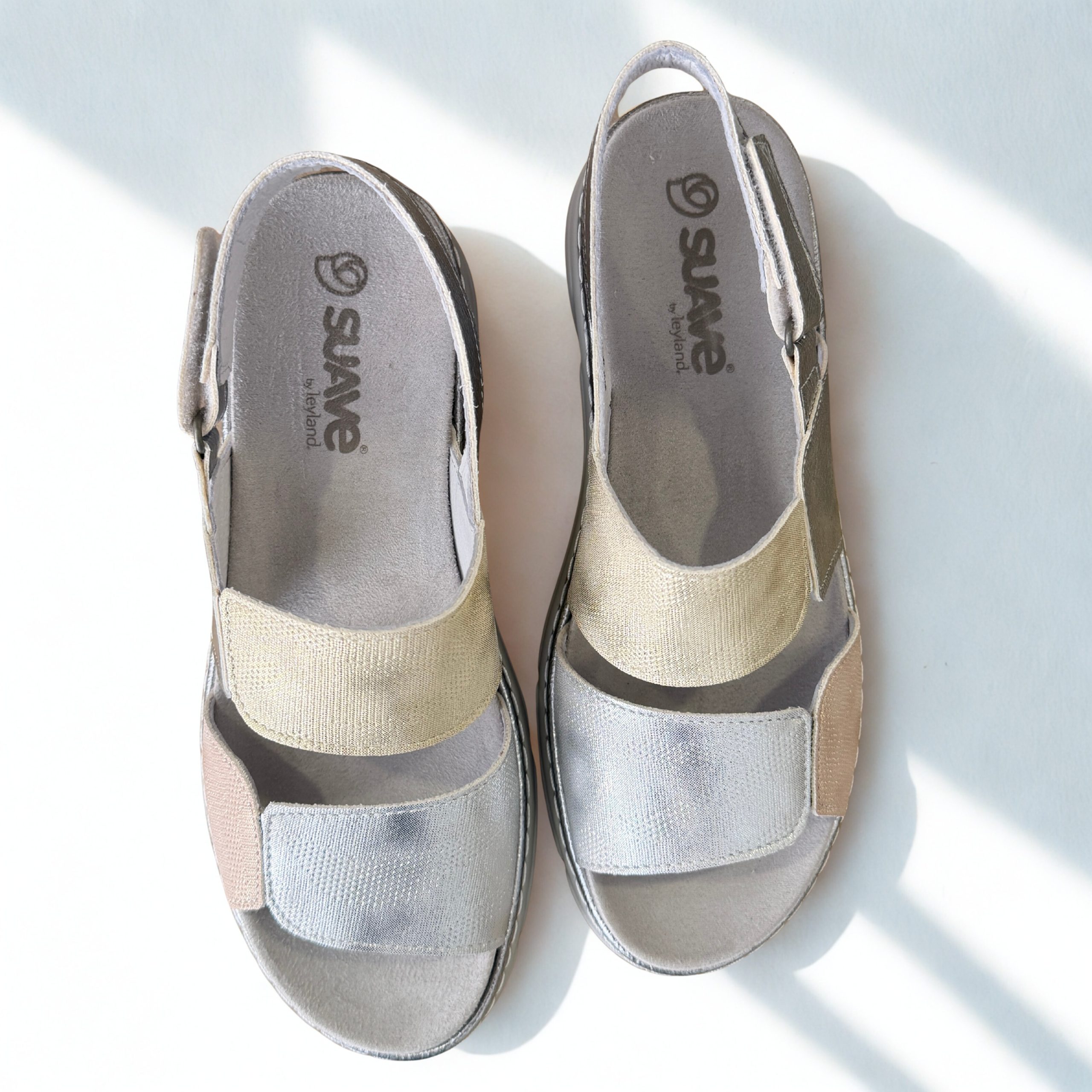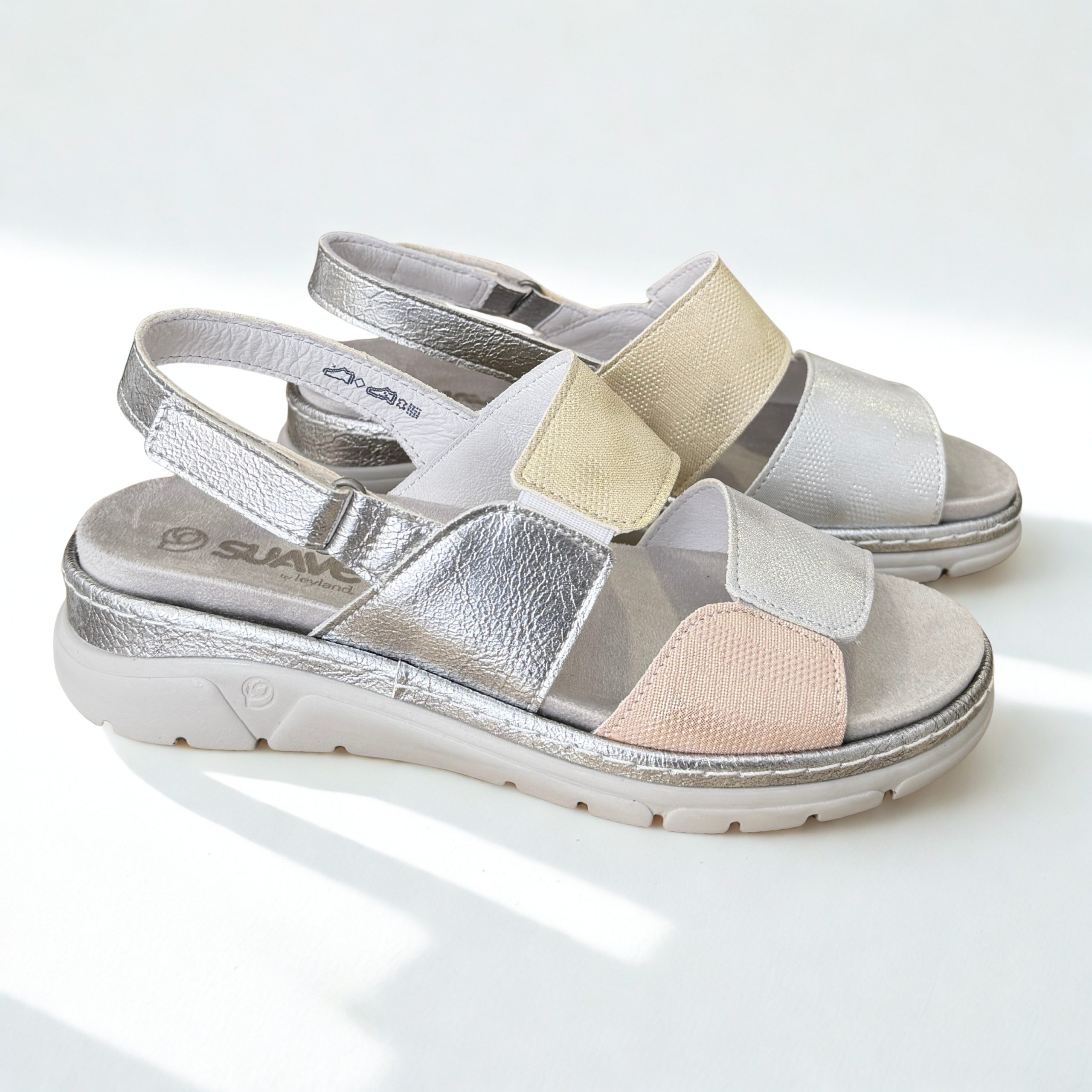 Sandalias de Suave By Leylan en piel multicolor. Plantillas extraíbles, anatómicas y lavables. Goma en el empeine para un perfecto ajuste. Cierre al tobillo con velcro. Suela de goma antideslizante muy ligera y flexible.