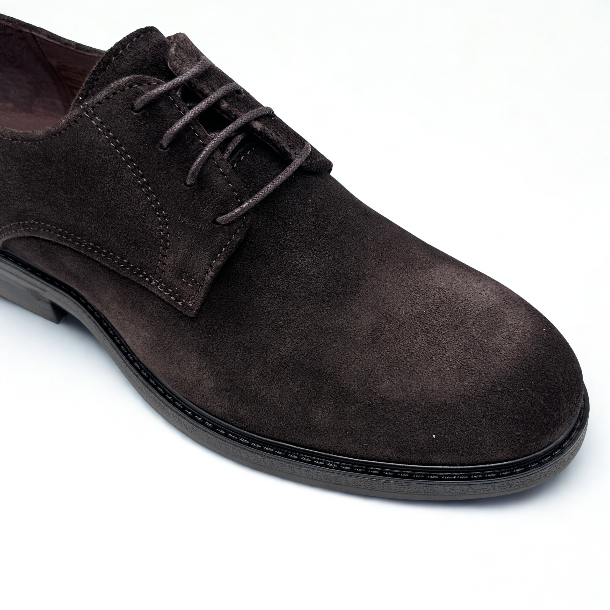 Zapato de Innovation en piel de serraje color marrón chocolate, cierre de cordones. Suela de goma antideslizante.